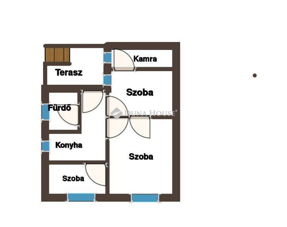 A 3 szobás házban konyha, kamra és fürdőszoba is található természetesen, de van egy 6 nm-es terasz is.