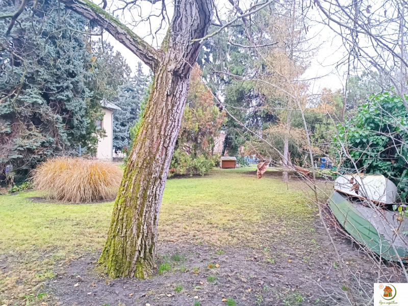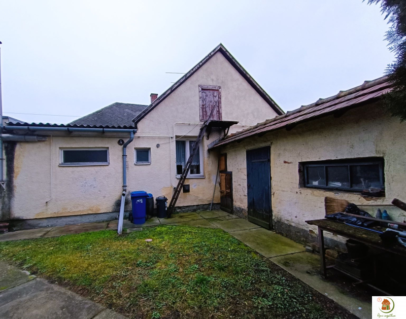 A ház külső méretei: 10m x 9,5m, a nettó lakótér 80m². A kertben örökzöldek, árnyékot biztosító szép nagy diófa, ásott kút, füves terület és több gépkocsi számára beálló hely.