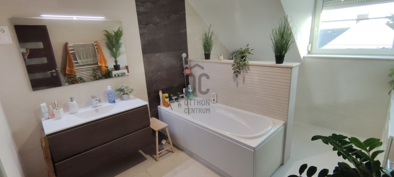 Eladó Debrecen egyik legfelkapottabb és legkellemesebb környékén, Csapókert szívében egy igazán különleges ingatlan, amely tökéletes választás lehet családok számára, vagy akár befektetési céllal is. Ez a családi ház 210 négyzetméteres alapterülettel rendelkezik, beton alapra 40 cm-es téglából épült. A ház egy 346 négyzetméteres telken helyezkedik el, amely lehetőséget ad a szabadidő kellemes eltöltésére, valamint a kertészkedés örömeire is. Az ingatlan belső elrendezése rendkívül praktikus és tágas, hiszen a négy hálószobája és két fürdőszobája révén ideális választás lehet nagyobb családok számára is. A világos nappali, amely a ház központi helyén található, tökéletes teret biztosít a közös családi programokhoz, míg a kandalló kellemes hangulatot teremt a hűvösebb estéken. A motoros redőnyök pedig nemcsak a biztonságot, hanem a kényelmet is szolgálják, hiszen könnyedén szabályozhatja a beáramló fényt. A házba kiváló minőségű, gépesített tölgyfa konyhabútor került beépítésre.