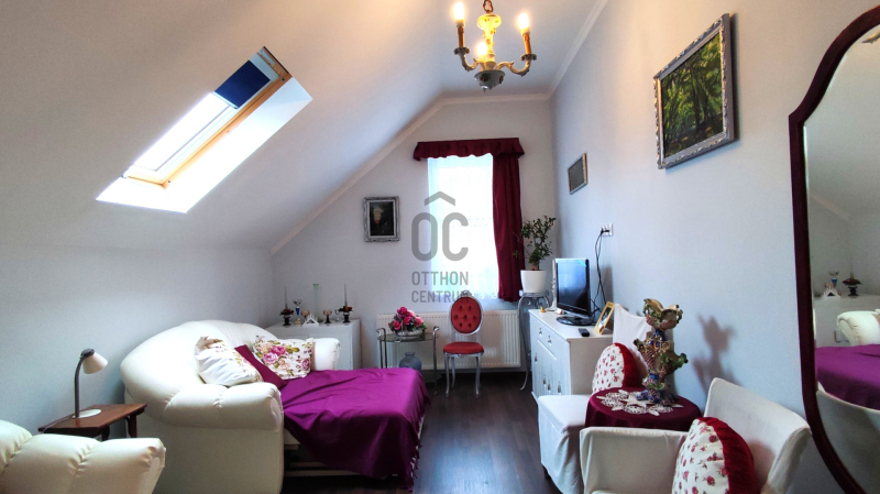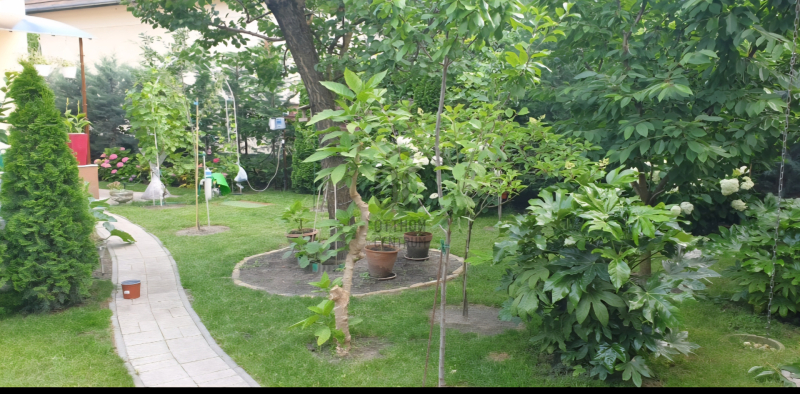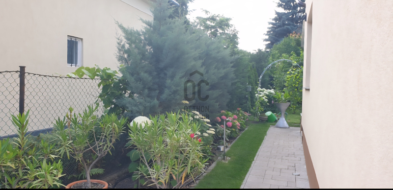 Parkosított, gyönyörű kert, automata locsoló rendszer, saját kutról. A ház körbe járható. Parkolási lehetőség, garazsban valamint két kocsi a kertben. Csendes, nyugodt környezet, csendes barátságos szomszédok.