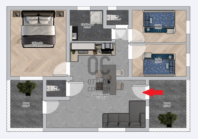 - Nettó alapterülete 65 m2, melynek elosztása kiváló.