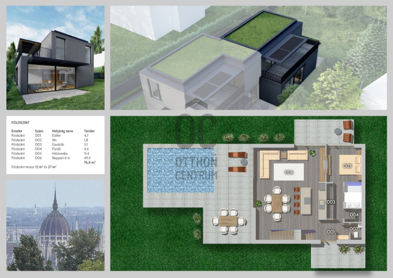 FÖLDSZINT – 76,8 m² + 12 m² és 27 m² teraszok