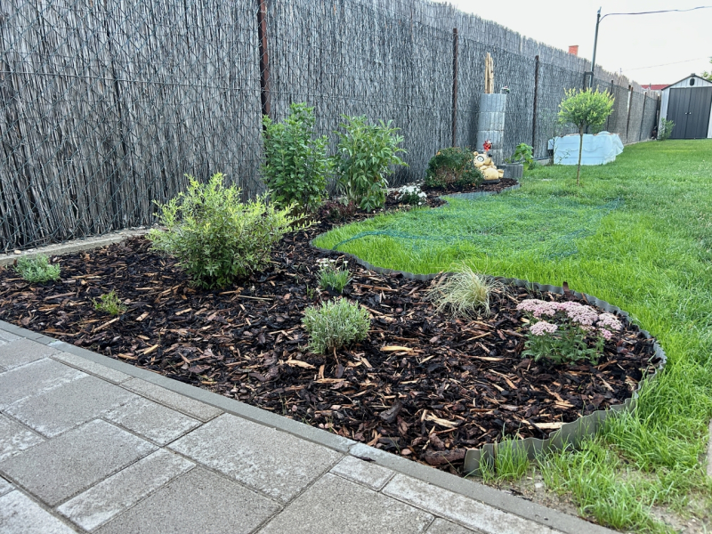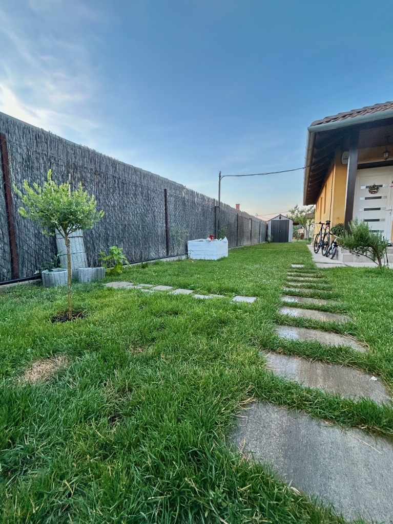 Saját telekrésze 445 m² amely szépen parkosított, 3 db. kocsibeállási lehetőséggel, a kertben található egy kisház is amely kb. 5 m²-es.