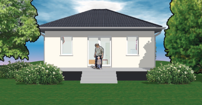 A tartószerkezeti falak Porotherm P30N+F téglából, betonkoszorúval, fa födémes tetőszerkezettel készülnek. A lábazat 10 cm polisztirol lépésálló, a homlokzatok 10cm-es Austrotherm Grafitos, a vízszintes födém 25 cm ásványgyapot szigeteléssel lesz ellátva.