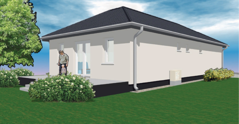 A minimális energiaigényt a megfelelő szigetelésen kívül a megújuló energiát használó gépészet is biztosítja. A fűtést levegő-víz hőszivattyús rendszer fogja végezni.