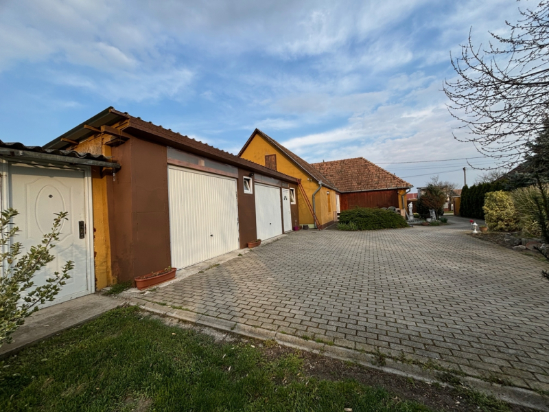A ház mellett kétbeállós garázs, nyárikonyha, kerti faház, és fatároló helyezkedik el . Az udvar egy része térkövezett, egy része parkosított, a kertben pedig rengeteg termő gyümölcsfa található.