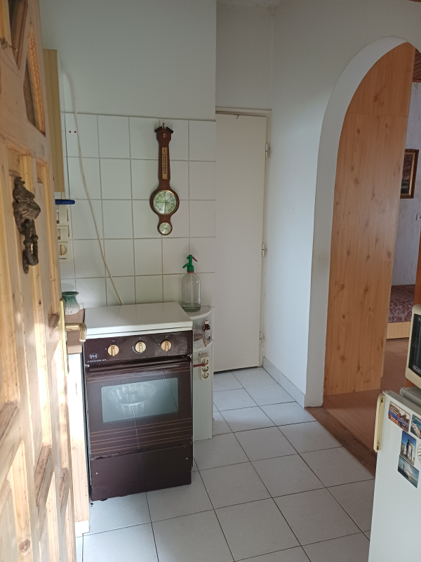 A nagyobbik rész kialakítása: előtér, konyha, 2 szoba, fürdőszoba.