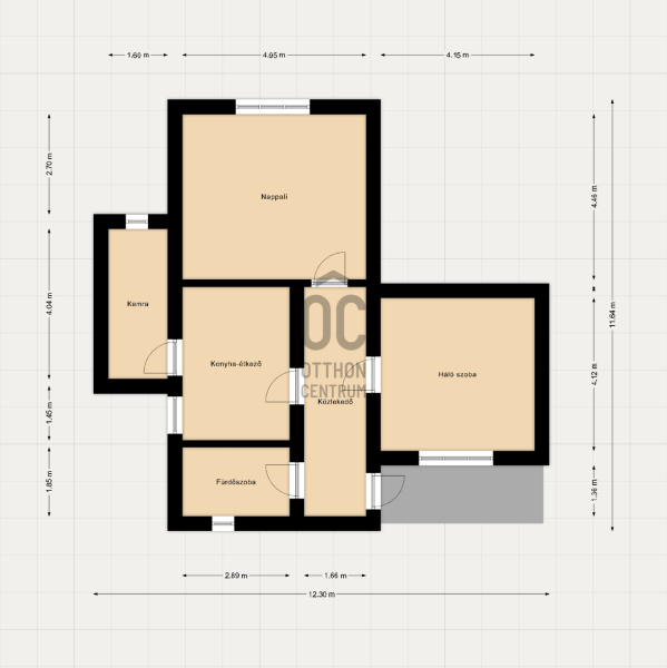 A házban egy nagyméretű előszoba, két nagy szoba, konyha-étkező, fürdőszoba-WC, kamra helyiségek találhatók.