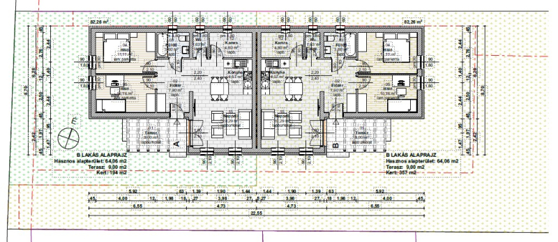 B LAKÁS Nettó 64,06 m2 Terasz: 9,00 m2 Kert: 357 m2 48,9M