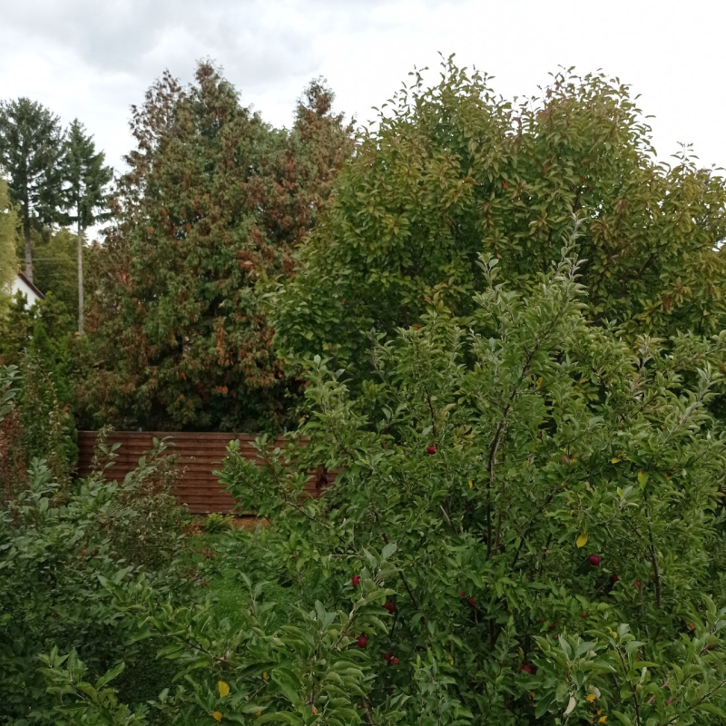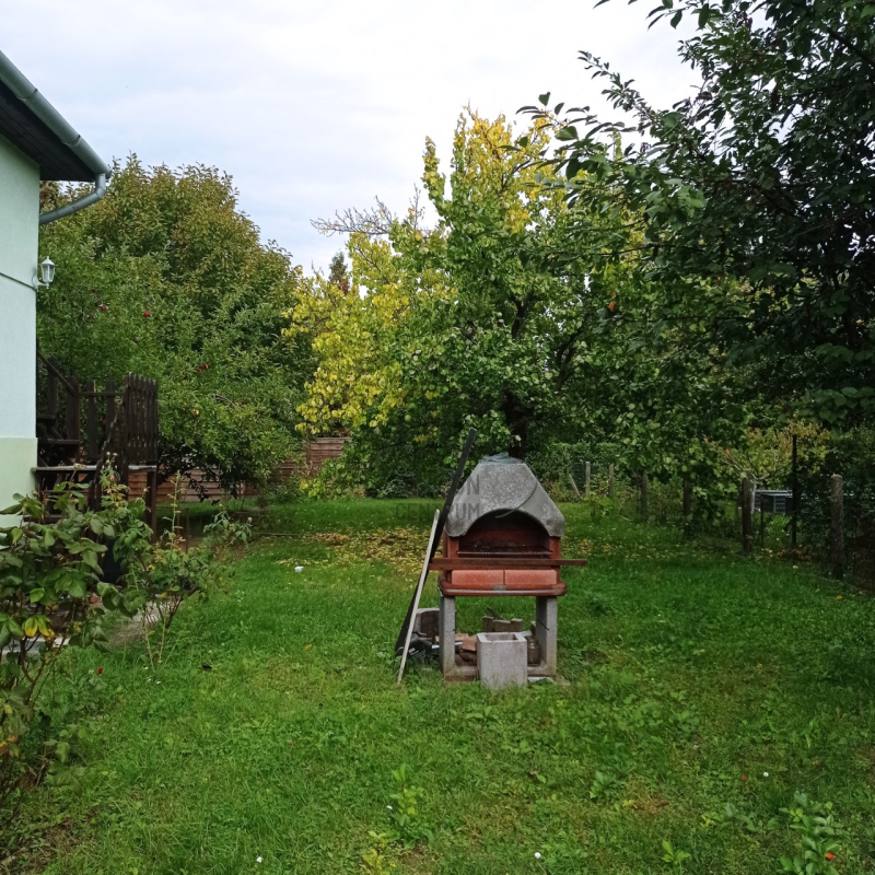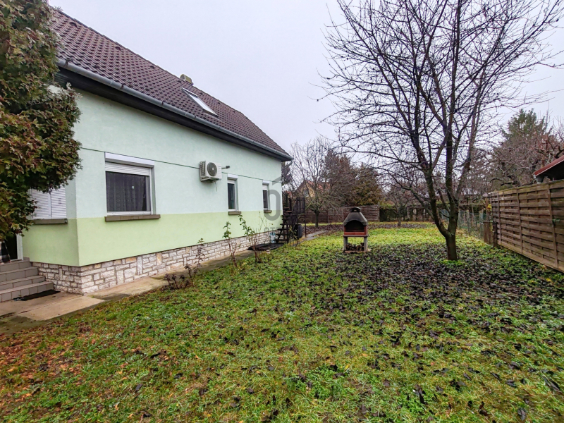 A kert igazi pihenőoázis: a garázson kívül fedett autóbeálló / kiülő, kerti grillező, valamint több termő gyümölcsfa is helyet kapott – tökéletes nyári estékhez, baráti és családi összejövetelekhez.