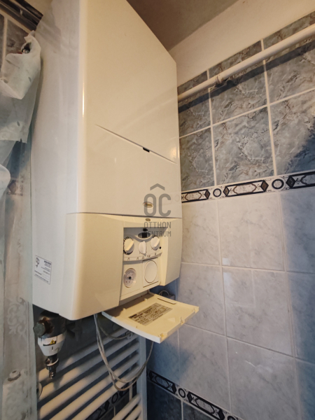 A ház fűtését és melegvíz-ellátását gázcirkó kazán biztosítja, így egész évben kényelmesen lakható.