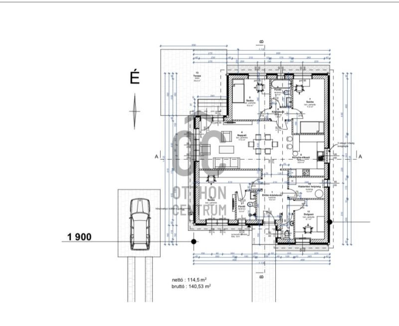 -Korszerű alaprajzi kialakítás, praktikus térszervezés