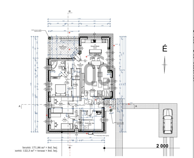 -Korszerű alaprajzi kialakítás, praktikus térszervezés