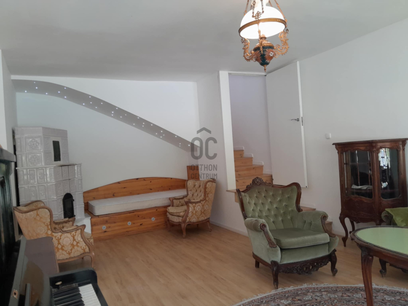 - nappaliban egy csodálatos cserépkályha, melyre rá van kötve a padlófűtés