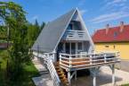 A belső és külső terek könnyedén egybenyithatók. Itt is 4 rétegű műanyag nyílászárók gondoskodnak a hő- és hangszigetelésről. A fa jellegű szerkezet és a 30 cm vastag szigetelés télen-nyáron kellemes klímát biztosít.