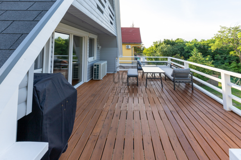 -A telek kialakítása miatt a 25 m²-es terasz alatt további helyiségek is kialakíthatók – így az ingatlan bővítése támogatott és könnyen megvalósítható.