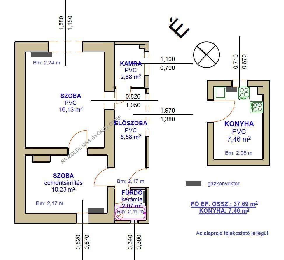 Fűtés: gázkonvektor.