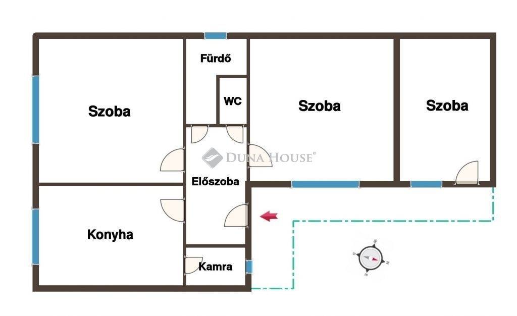 Az épület magában foglal 3 szobát, konyhát, vizes blokkot.