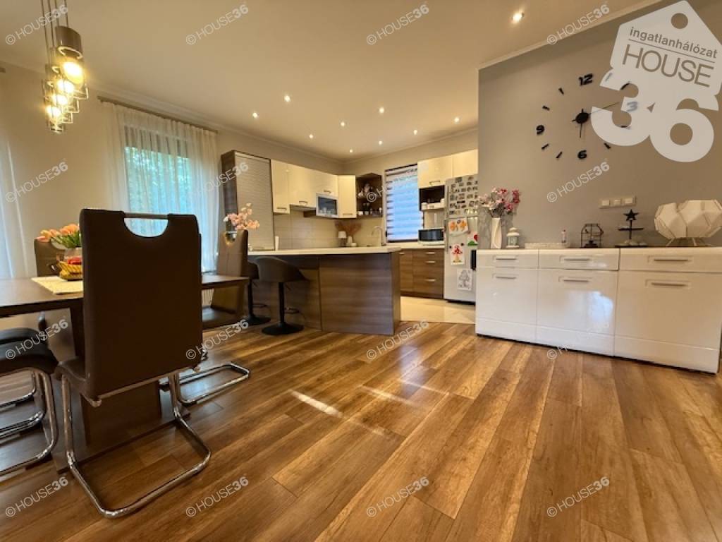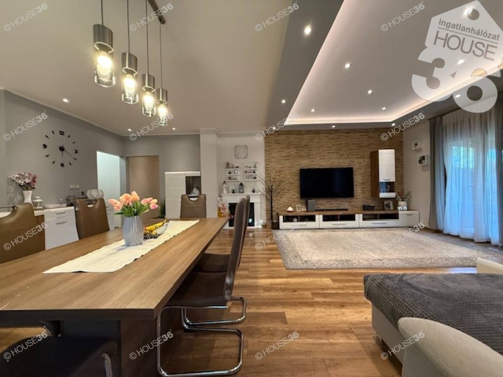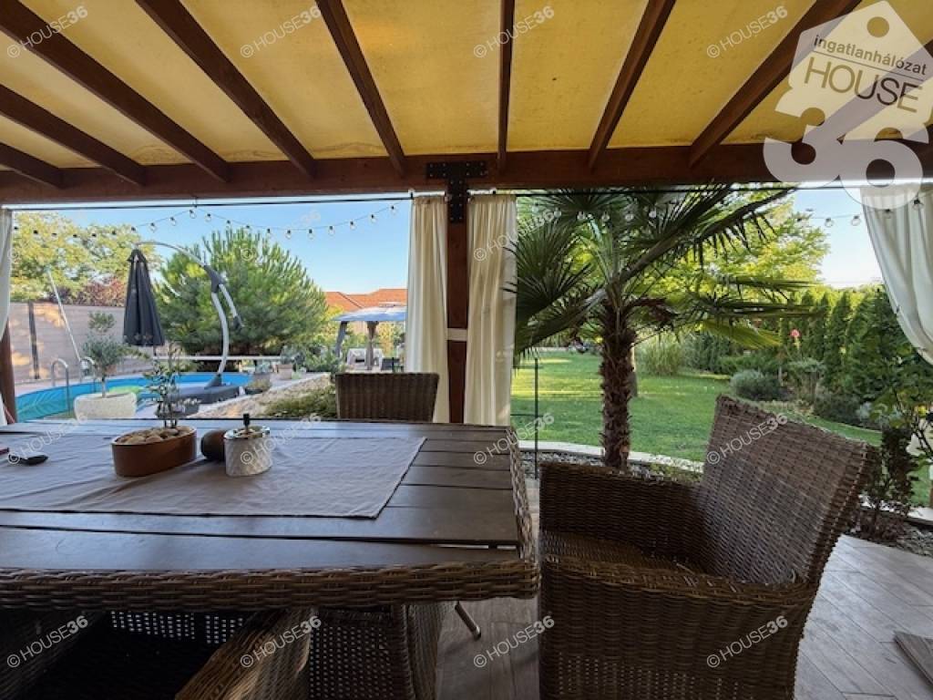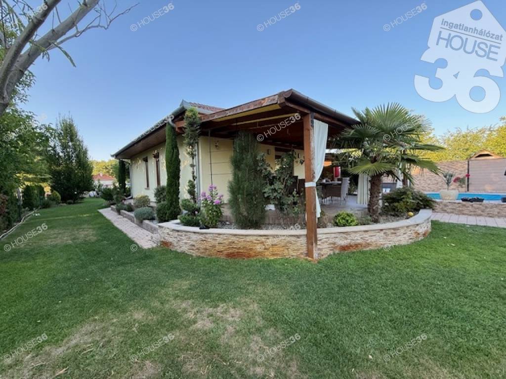 Kecskemét vonzáskörzetében Ballószögön, 2016-ban épült, Nappali + 4 szobás családi ház, 1301 m2-es telken, gyönyörű kerttel, medencével, 60 m2-es fedett terasszal, dupla garázzsal eladó!