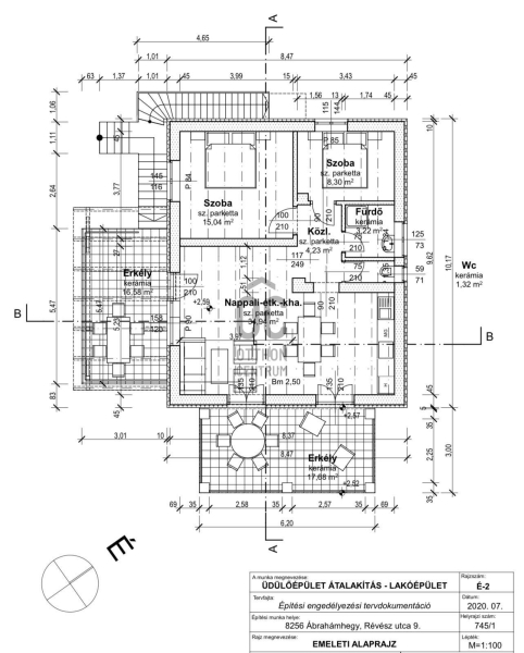 Az emeleti szint - 2 hálószoba, fürdőszoba ,amerikai konyhás nappali, 2 db panoráma erkély.