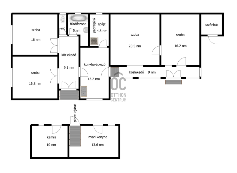 Megvételre kínálok Szabolcsbákán, főutcán egy átlagos állapotú, palával fedett családi házat melynek az első része (66.5 nm) a 80-as éveben B-30-as téglából, míg a hátsó, felújítandó/bontandó (45 nm) traktus vályogból épült, 1176 nm-es 22 méter széles telken. Az ingatlan két utcafronti szobáját keményfa parkettával, a többi helyiséget (az előszobát, a konyha-étkezőt, a külön wc-t, fürdőszobát) járólappal, valamint a hátsó részen található két szobát pvc -vel burkolták. A nyílászárók még az eredetiek, fából készültek, a melegről központi fűtés gondoskodik, ami gáz, illetve vegyes kazánnal is működtethető. Az udvaron egy különálló, teljesen alápincézett nyári konyha valamint kamra-tároló található.