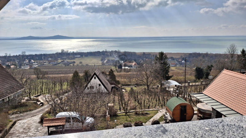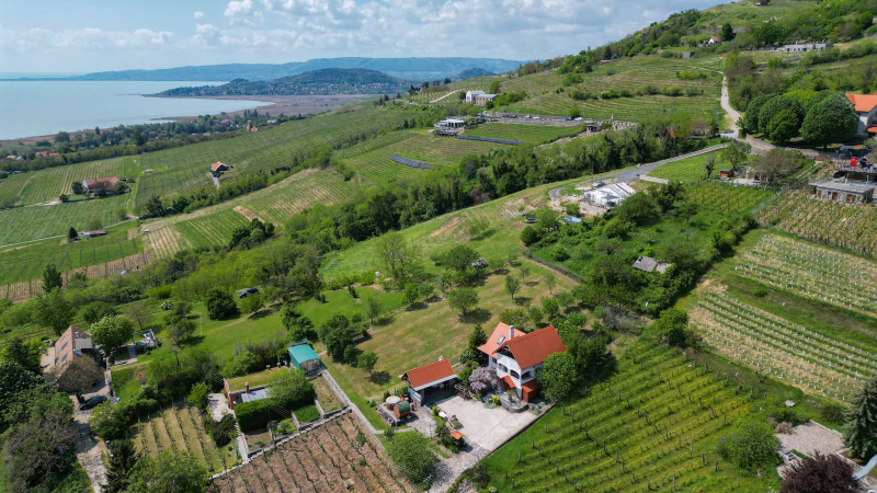 A szőlődűlők között fekvő ingatlan - együttes PÁRATLAN PANORÁMÁT NYÚJT A BALATONRA ÉS A KÖRNYEZŐ TANÚHEGYEKRE!