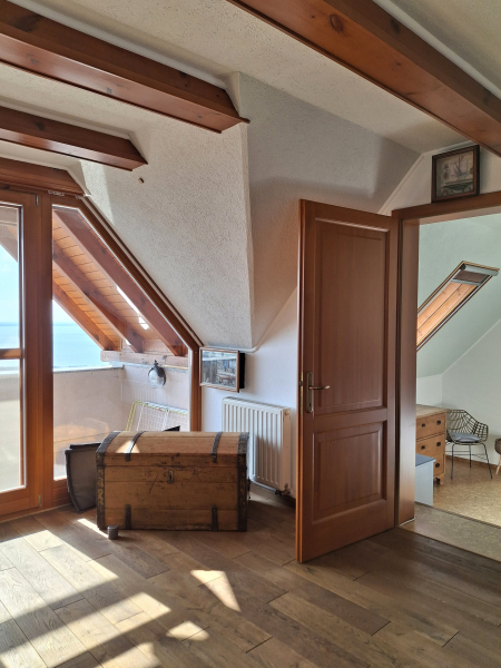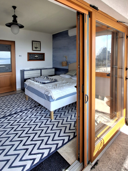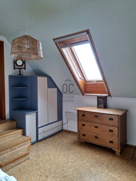 A felső szinten a napfényes nappalihoz szintén kapcsolódik egy terasz+ külön hálószoba és egy zuhanyzós fürdőszoba.