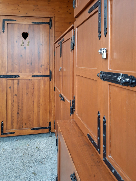 A szaletli alatt a kerti eszközök tárolására kialakított helyiség épült. Előtte pedig a relaxálást biztosító dézsafürdő és szauna kapott helyet.
