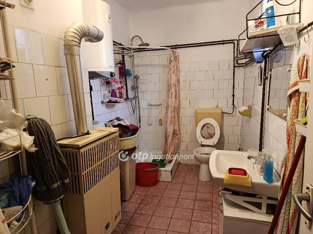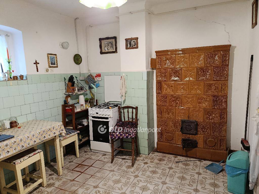 Az ingatlan egyik nagy előnye a tágas hatású belső tér, amelyet a sok üvegfelület és a nagy méretű konyha biztosít. A házban két szoba található: az egyikben gázkonvektor, a másikban pedig hangulatos cserépkályha is gondoskodik a fűtésről. A meleg vizet bojler biztosítja.