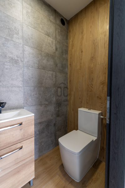 A praktikus belső kialakításnak köszönhetően az alapterületen belül helyet kapott egy háztartási helyiség, amely a gépészeti berendezések elhelyezését is szolgálja. A fürdőszoba kialakítása, felszereltsége egyéni igények szerint választható.