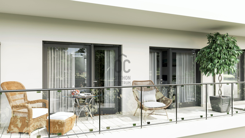 - PRÉMIUM MŰSZAKI MEGOLDÁSOK – a lakások hő- és hangszigetelése kiemelkedő, a terasz burkolata korszerű WPC, a fűtés-hűtés okos vezérléssel, energiahatékony hőszivattyús rendszerrel működik.