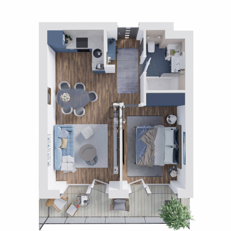 - KÉNYELMES ÉS MODERN ELRENDEZÉS – nappali + hálószoba kialakítás, tágas, napfényes terekkel, optimális funkciókkal.