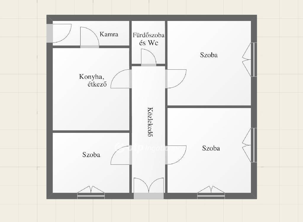 A belső elrendezés kifejezetten előnyös: három tágas, különnyíló szoba áll rendelkezésre, melyek közül kettő keleti, egy déli tájolású, így a ház világos, napfényes. A közel 18 nm-es konyha és étkező és az ehhez kapcsolódó 6nm-es kamra jól használható alapot ad egy modern, családbarát konyha kialakításához, ahol garantáltan mindenki helyet fog tudni foglalni még a legnagyobb ünnepi vacsoránál is.