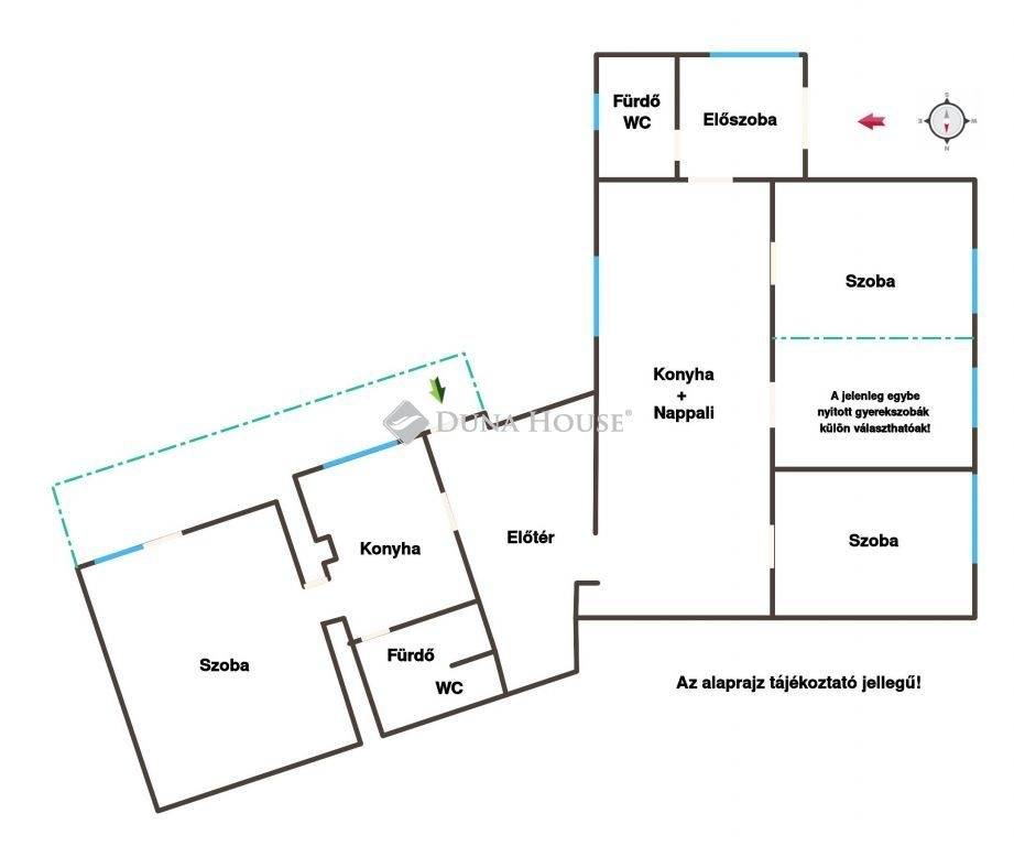 A jelenlegi nagyobb hálószoba két külön helyiséggé alakítható