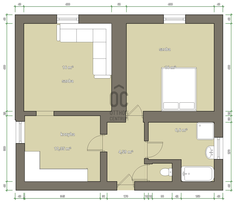 - 2 tágas szobával rendelkezik.