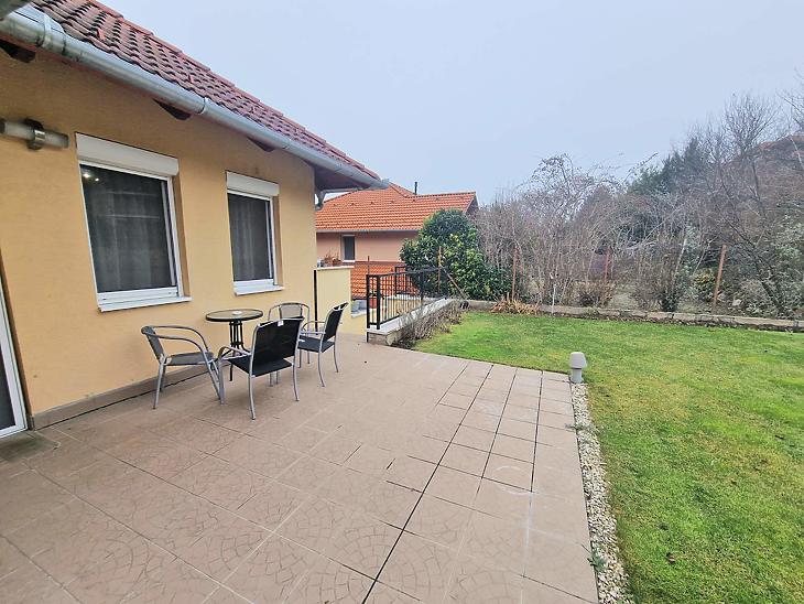 A lépcsőzetes telekkialakítás praktikus, esztétikus és öntözőrendszerrel ellátott, amely lehetővé teszi a kert különböző funkcionális zónáinak kihasználását. A kikapcsolódást 14 m²-es terasz és 19 m²-es erkély szolgálja.