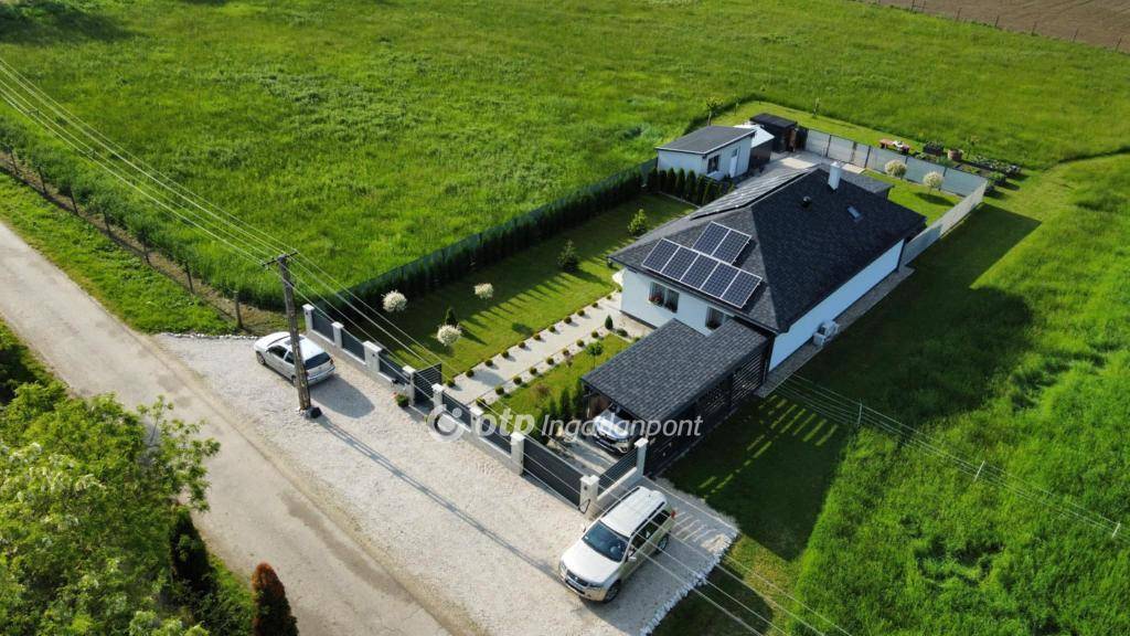 Eladásra kínálunk egy Exkluzív, 2020-ban épült új, könnyű szerkezetes családi házat - csodás birtokkal magakörül! Magas minőségű otthon várja új tulajdonosát Sobor településen, Magyarországon, Győr-Moson-Sopron Vármegyében. Ez a páratlanul stílusos és modern ingatlan minden igényt kielégít és az elegancia és a kényelem tökéletes harmóniáját nyújtja. Fedezze fel a prémium kivitelezés és kifinomultság magasztos érzését ebben a 97 négyzetméter nagyságú + terasz + autóbeálló - ingatlanban, mely ötvözi a prémium minőségű anyagokat és a legkorszerűbb technológiát. Az épület számos kiemelkedő jellemzővel rendelkezik, hogy biztosítsa a tökéletes otthoni élményt. A külső falakon 15 cm vastag hőszigetelés biztosítja a hatékony hőtartást, míg a zárófödémben 30 cm vastag hőszigetelés gondoskodik a tökéletes hangszigetelésről. A válaszfalakban pedig 10 cm vastag, kiváló minőségű szigetelést találunk. A külső hőszigetelés 15 cm vastag grafitos Dryvit rendszerű hőszigetelő vakolatrendszerrel van ellátva, amely hosszú távú védelmet nyújt a környezeti hatásokkal szemben. A tetőfedését pedig minőségi IKO Cambridge típusú, térhatású bitumenes zsindelyek alkotják, melyek nemcsak tartósságot biztosítanak, hanem esztétikailag is lenyűgöző látványt nyújtanak. A fűtést és a melegvizet Bosch Tronic 3500 elektromos kazán szolgáltatja, amely kiváló hatékonysággal működik, és megbízható hőellátást biztosít az egész épületben. A padlófűtés minden helyiségben megtalálható, így a kellemes hőmérséklet mindig körülveszi önöket. A szobákban pedig elegáns laminált padló burkolatot találunk, míg a többi helyiségben igényes járólapot. A házon található napelem rendszer, melyről gyakorlatilag szinte költség nélkül üzemel. Energetikai besorolása AA+, mely kiemelkedő a mai újépítésű otthonok között is. 3x25 amper biztosítja egy hatalmas, külön bontott kismegszakítóval a gondtalan működést. A kapu elektromosan, távolról is nyitható. Az otthonba lépve az előtér fog bennünket, amelyből a közlekedőbe juthatunk. Innen jobbra található két külön nyíló szoba, melyek 10-11 négyzetméteres mérettel büszkélkednek. A szobák szemben helyezkedik el a tágas, 2 személyes épített zuhannyal ellátott fürdőszoba, melyben WC is helyet kapott, mellette pedig teljesen külön helyiségben található még egy WC. A közlekedő elején balra található a lenyűgöző 27 négyzetméteres nappali, mely egy légtérben kapcsolódik az étkezővel és a 9 négyzetméteres konyhával. A konyhából pedig egy 2,4 négyzetméteres éléskamra nyílik, mely mögött megtalálható a nappaliból nyíló 4,9 négyzetméteres háztartási helyiség, melyben található a kazán, mosógép, szárítógép, emellett kényelmesen elhelyezheti a mindennapi tárgyait. Telek: A teljes telekméret 8936 négyzetméter. Az ingatlanhoz tartozik egy lenyűgöző fedett terasz, amely tökéletes helyszínt biztosít a kikapcsolódásra és a vendégek fogadására, valamint egy 2025-ben épült fedett épület rész, melyet jakuzzi létesítésére építettek, külön figyelve a kényelemre, ugyanis a házból közvetlen kilépve szemben található. A kert pedig csodálatos lehetőségeket nyújt a szabadban való pihenésre és szórakozásra. Minden része tökéletesen megtervezett, varázslatos növényekkel telepített. Az év egész időszakában éke a háznak. Hátul pedig a veteményesek szerelmesei is megtalálják számításaikat, ugyanis egy új magas ágyás biztosítja a friss zöldségeket a mindennapokhoz. Utcafrontról befelé indulva található egy kényelmes, fedett kocsibeálló - elektromos garázsnyitóval, hogy autóját mindig biztonságban tudhassa. Megtalálható ezen kívül egy nyári konyha, amihez barkács műhely is tartozik. Ez az exkluzív ingatlan egyedülálló lehetőséget kínál a luxus és a minőség szerelmeseinek. Ne hagyja ki ezt a ritka alkalmat, és lépjen be az álmai otthonába. Vegye fel velünk a kapcsolatot még ma, hogy személyesen megtapasztalhassa ezt a lenyűgöző ingatlant és felfedezhesse a maga számára tartogatott kifinomultságot és kényelmet. Az ingatlan hitelezhető, tehermentes. Elhelyezkedés szempontjából tökéletes környezetben található, távol minden zajtól, kifejezetten ajánlom a természet szerelmeseinek. A házból kilépve 1-2 perc sétára található a Rába folyó, mely fürdési, túrázási, horgászási lehetőséget is biztosít, emellett a vadászati területek is remek adottságokkal bírnak. Elhelyezkedés szempontjából Győr városa 31 km-re található, emellett Pápa városa 27 km-re, munkalehetőség mindegyikben széleskörű, tömegközlekedéssel is megoldott. OTP Ingatlanpont teljes körű ügyintézéssel áll az eladók és a vevők rendelkezésére. A kínálatunkból választott ingatlan finanszírozásához kedvezményes hitelkonstrukciót kínálunk. Az adásvételi szerződés megkötéséhez igény szerint megbízható ügyvédi közreműködést biztosítunk, és segítséget nyújtunk az adásvételhez kapcsolódó ügyek intézéséhez is. Az ingatlanról készült alaprajz, illetve fényképfelvételek az Otp ingatlanpont szellemi tulajdonát képezik.
