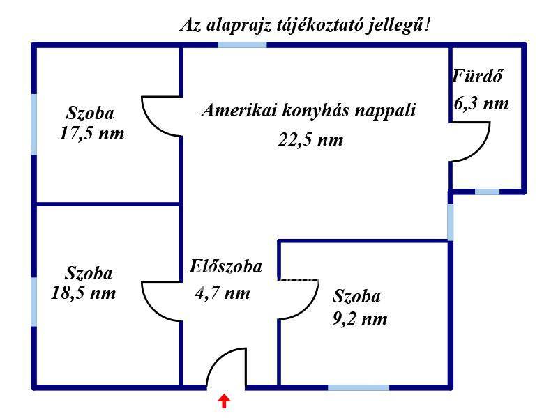 Az ingatlanban kialakításra került 2 szoba, 1 félszoba, amerikai konyhás nappali, fürdőszoba és egy közlekedő, melyek otthonos életteret biztosítanak.