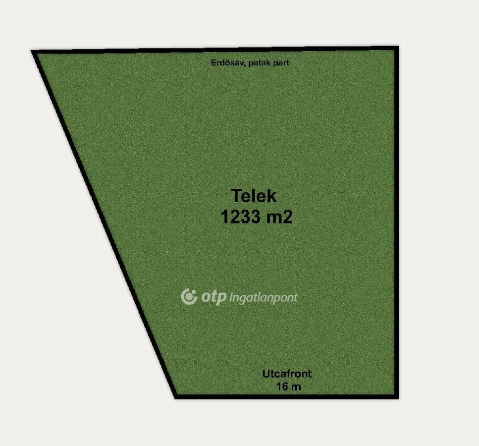 A telek nagysága 1233 m2. Beépíthetősége 30 %, így egy kellemes méretű családi házat, de akár ikerházat is építhet rá.