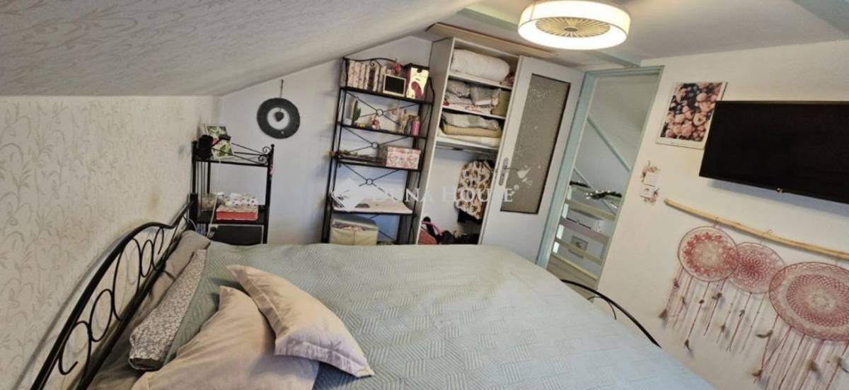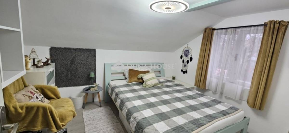 Az egyik tetőtéri szoba nagyobb része ferde síkú, hasznos alapterülete kb. 4 m², így vendégszobának, gyerekszobának vagy hobbitérnek ideális.