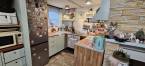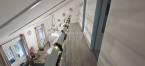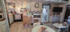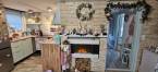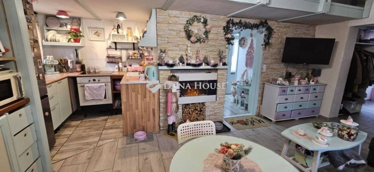 A belső terek pasztell színekkel, romantikus részletekkel és praktikus elrendezéssel kerültek kialakításra. A nappali-amerikai konyha a ház központi tere, világos, barátságos hangulatú. A nappaliban jelenleg elektromos kandalló működik, amely kellemes, otthonos atmoszférát teremt.