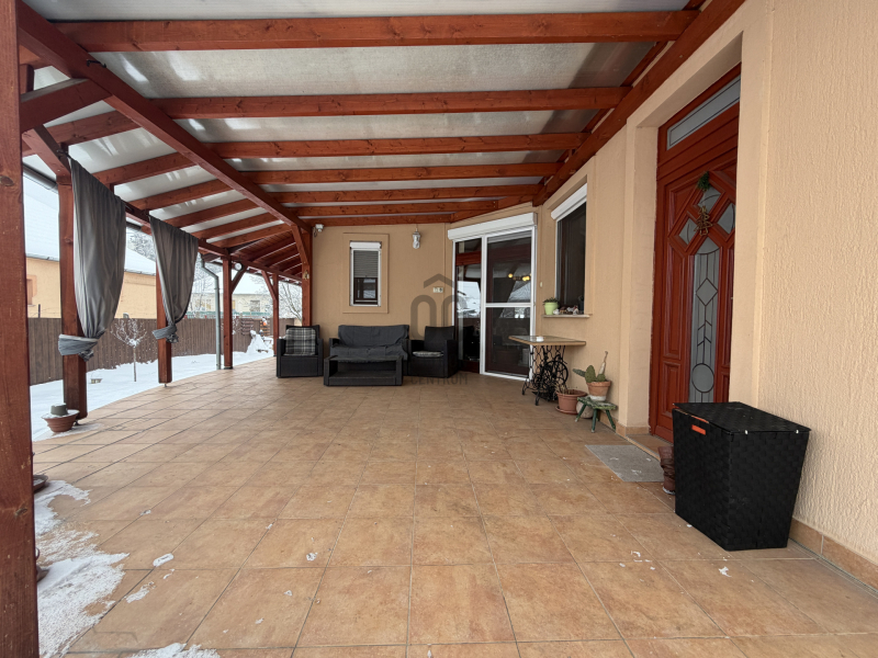 A 30 négyzetméteres fedett terasz kimondottan kedves kinézetet kölcsönöz a háznak. A kerti fedett kiülő mely kemencével is rendelkezik, tökéletes helyszín a nyári estéken való pihenéshez, baráti összejövetelekhez.