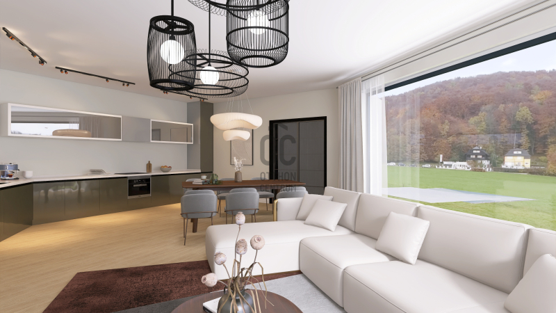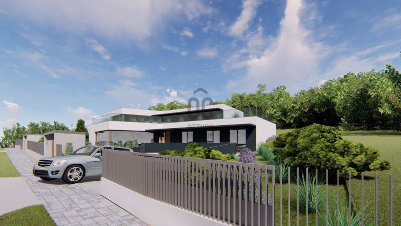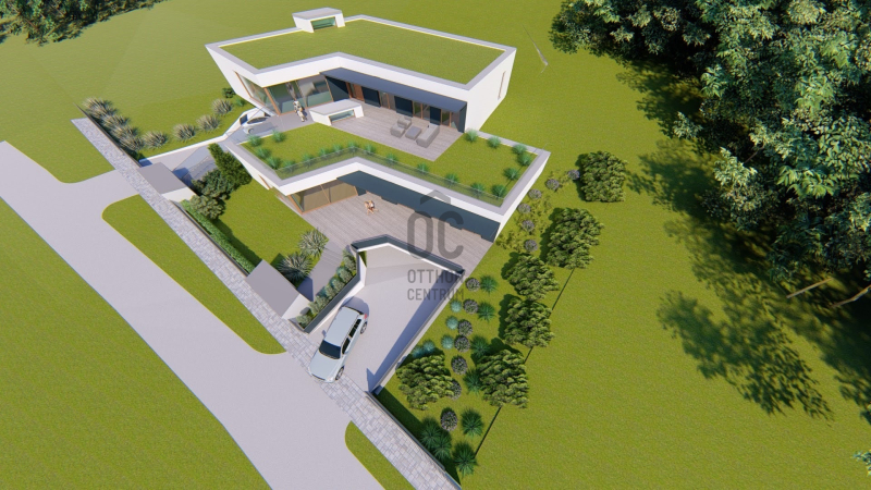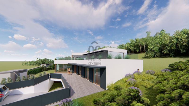 Az épület formavilága rendkívül impozáns. Egyedi módon, szinteltolással kapcsolódik egymáshoz a két ház. Az ingatlant átgondolt, praktikus alaprajz, magas minőségű kivitelezés, modern, minden igényt kielégítő felszereltség jellemzi. Elhelyezkedése rendkívül csendes, zöld. Egy zsák utca végén, természetvédelmi terület szélén van, ami intimmé teszi. A hatalmas nyílászáróknak köszönhetően a ház világos, napos, panorámás a környező erdős hegyekre. A 61 m2-es terasz és a hozzákapcsolódó 78 m2-es zöldtető tökéletes helyet biztosít a kellemes pihenésre, kikapcsolódásra.
