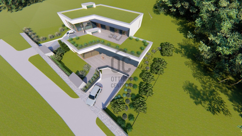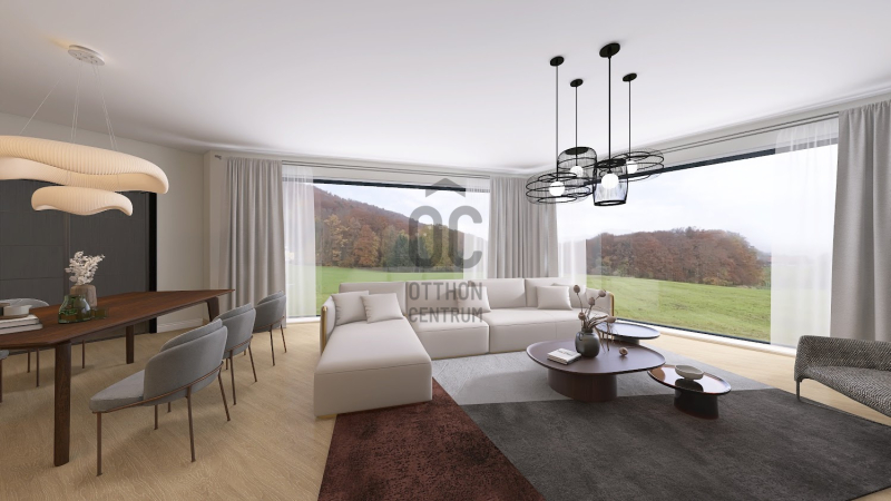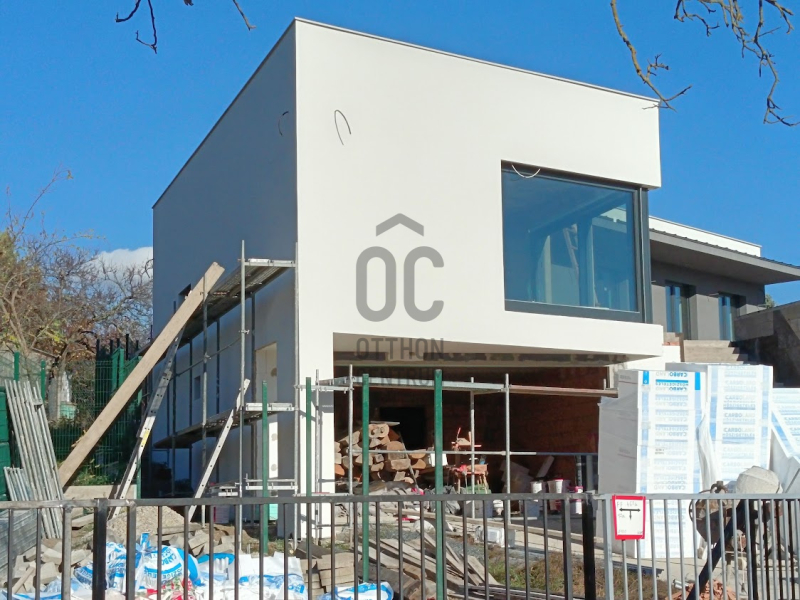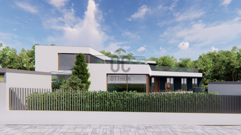 Az épület formavilága rendkívül impozáns. Egyedi módon, szinteltolással kapcsolódik egymáshoz a két ház. Az ingatlant átgondolt, praktikus alaprajz, magas minőségű kivitelezés, modern, minden igényt kielégítő felszereltség jellemzi. Elhelyezkedése rendkívül csendes, zöld. Egy zsák utca végén, természetvédelmi terület szélén van, ami intimmé teszi. A hatalmas nyílászáróknak köszönhetően a ház világos, napos, szép kilátás van a környező erdős hegyekre. Az 57 m2-es terasz és a hozzákapcsolódó saját kertrész tökéletes helyet biztosít a kellemes pihenésre, kikapcsolódásra.
