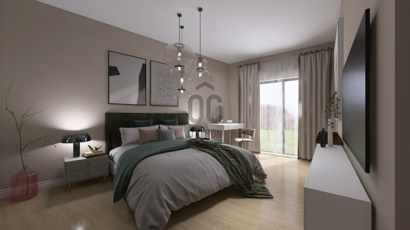 A nyílászárók antracit színűek, fa, 3 rétegű, bukó-nyíló ablakok és nagy méretű toló teraszajtó, rejtett tokozással, elektromos redőnnyel, illetve zsalúziával.