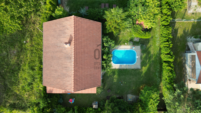 A Balatontól mindössze 1500 méterre, Balatonföldvár nyugodt, ritkán beépített részén kínálunk megvételre egy valóban különleges adottságú, gondosan karbantartott, medencés családi házat.