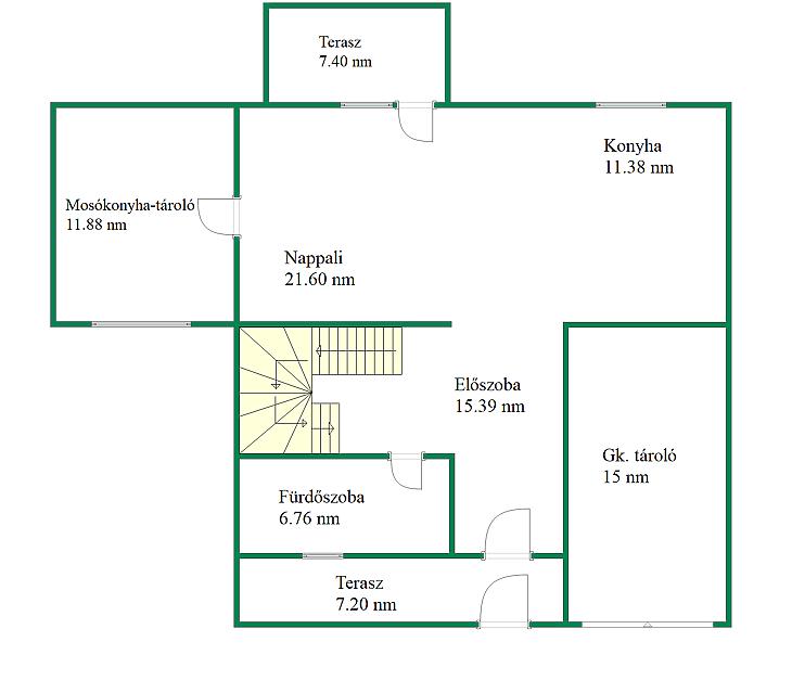 Az ingatlan 172 nm összterületű, ebből 139 nm lakótér. A kialakítás kifejezetten jól használható: négy hálószoba, amerikai konyhás nappali, gardrób, két fürdőszoba + külön WC biztosít elegendő teret akár nagyobb családnak vagy több generációnak is.