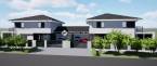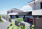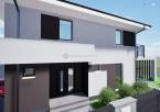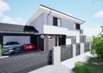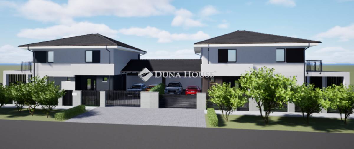 802nm-es összközműves telken kapott helyet egy két lakásos ikerház, amelyek az igényesen kialakított garázsok hátsó főfalaival kerültek össze építésre.