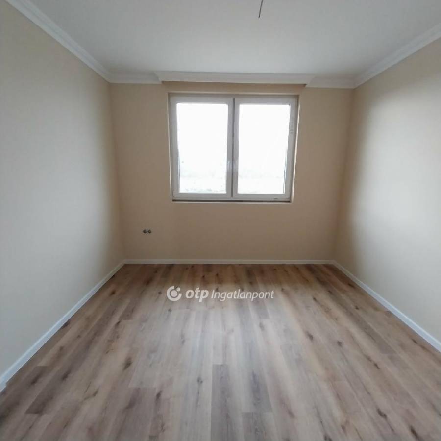 Tágas, 45,8 m2-es,- világos, amerikai konyhás nappali, 3 külön nyíló hálószoba, fürdőszoba + külön WC, mosókonyha, 16 nm-es fedett terasz, 18 m2-es a garázs. Kerítéssel, térkövezéssel!