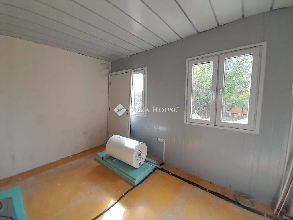 A ház melegvízellátása bojlerrel, fűtése elektromosan megoldható. A ház télen is lakható, mert a gyári szigetelésen felül belülről plusz szigeteléssel látták el. A kertben gondozott termő gyümölcsfák vannak, vízellátásukat két fúrt kút biztosítja. A kert végében egy fedett kocsibeálló és egy kerti WC is található. A kocsibeálló áramellátása is megoldott. Az ingatlan jelenlegi tulajdonosa élethelyzet változás miatt már nem fejezi be a lakhatáshoz szükséges munkálatokat, ezek elvégzése az ingatlan új tulajdonosára várnak.